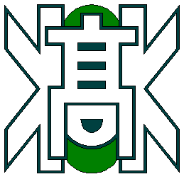本校の校章は、平成14年度に生徒、職員に公募し、応募された中から、塩崎ゆき乃さん(平成15年度卒業:当時2年生)、河波直也君(平成16年度卒業:当時1年生)のアイデアをベーシックデザインとして採用し、北野圭吾君(平成14年度卒業:当時3年生)にデザインアップをお願いし、完成したものです。
