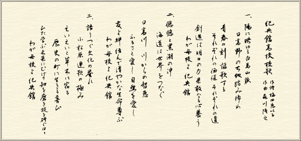 紀央館高等学校 校歌 作詞:梅田恵以子 作曲:森川隆之